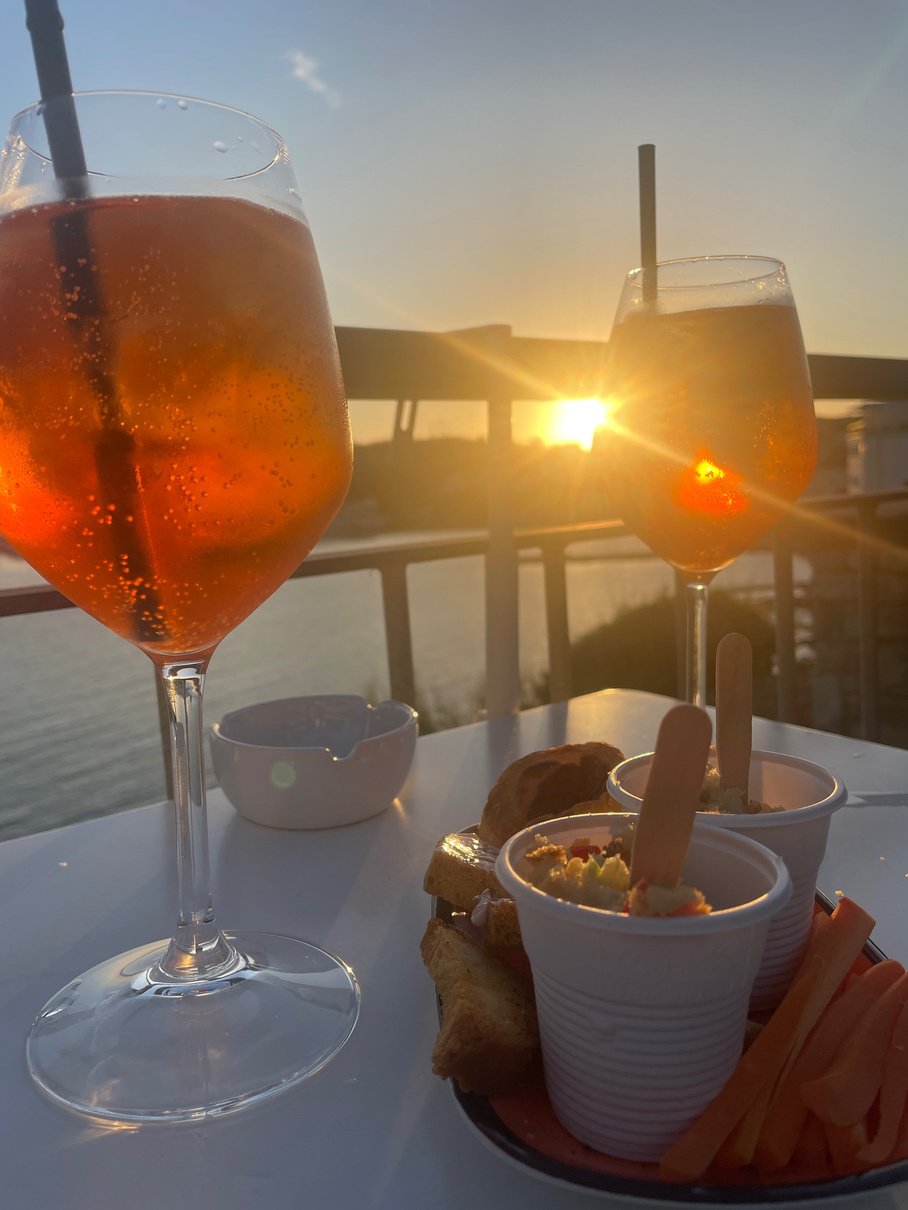Genießt einen Aperitivo auf ​dem Balkon oder beim ​Sonnenuntergang am Piazza ​Bovio.